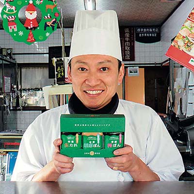 商店街で輝く一番星。 丁寧で真摯な接客とアイデアの光る商品開発、コスプレデーやSNSによる情報発信でファンをつくり、思わず「また来たい」「また食べたい」と思ってしまうお店づくりに励んでいます。 肉屋店主で料理人である一方、音楽家の側面も持ち、町のお巡りさんらと組んでバンド活動で村全体を盛り上げています。