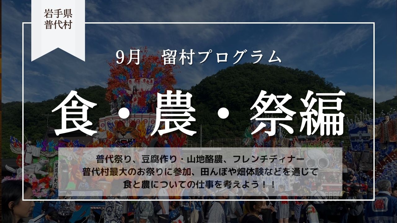 食・農・祭編 - 普代祭り、豆腐作り・農業体験、地産地消フレンチディナーなどを実施します。